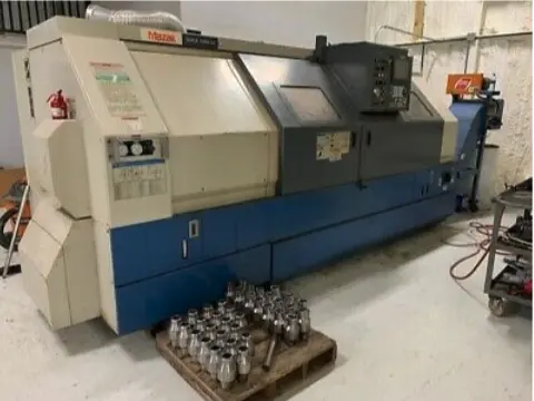 Used CNC Lathe, used, with 20.08" swing, 60.51" machining length, 2-axis, 15" chuck, and 3.15" bar capacity. Features 15" Kitagawa Hydraulic 3 Jaw Chuck and Manual Steady Rest. 40 hp, 3,000 RPM max, turning diameter of 15.75", with tailstock.