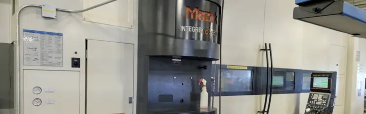 CNC Lathe. Equipped with a 50 HP spindle motor, C-axis, Y-axis, B-axis, high-pressure thru-spindle coolant, and Renishaw Probe. Features include 36.22" swing, 120" machining length, 10.2" spindle bore, and 80 tool positions.