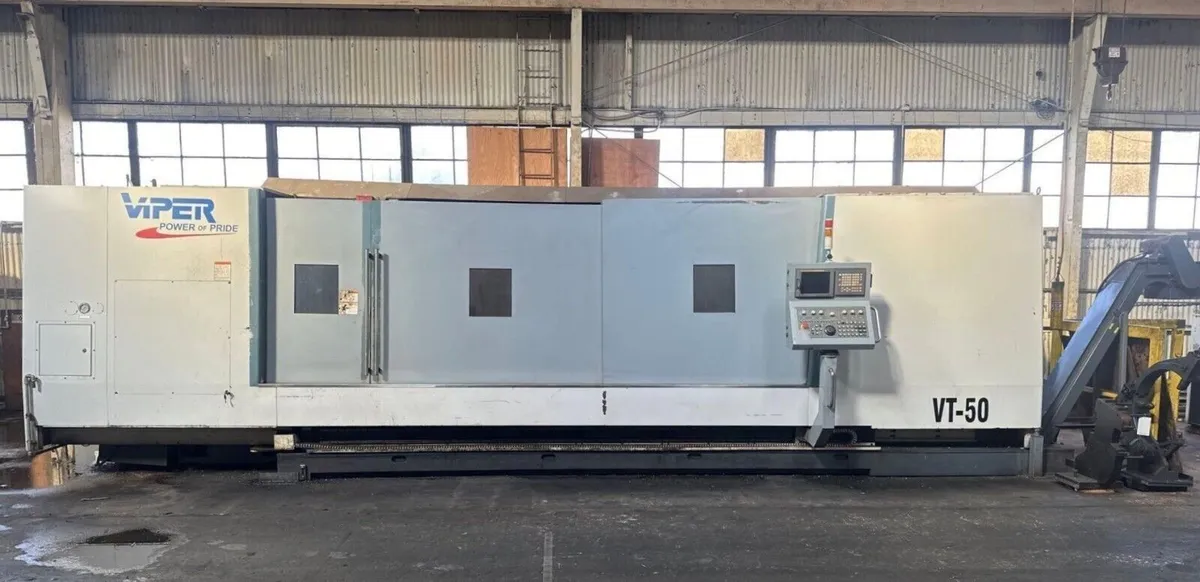 CNC Lathe. Features 25” chuck, 6.2” bar capacity, 39.37” turning diameter, Fanuc 21i-TB CNC control, chip conveyor, and steady rest. Includes Yamakawa 4-jaw hydraulic chuck and tailstock. Condition: used.