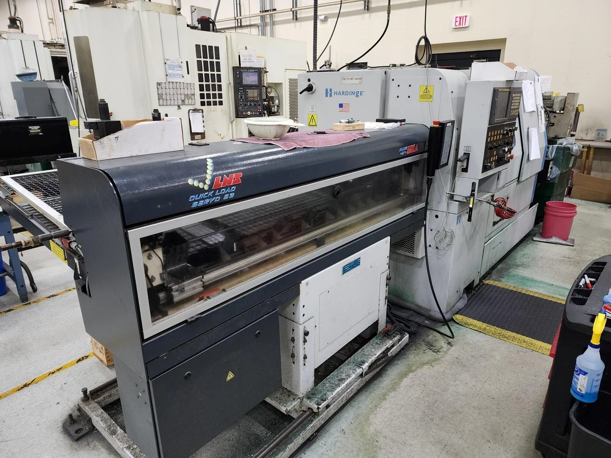Used CNC Lathe, 25 hp, 5,000 RPM, 21" swing, 14" machining length, 2" bar capacity. Features FANUC 18i-TB control, sub spindle, tailstock, chip conveyor, and more. Equipped with LNS Quickload barloader and toolholders.