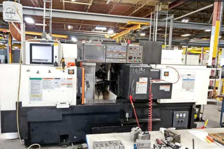 2012 MAZAK MULTIPLEX 6300-II Y, boasting twin spindles, dual turrets, and a 30 hp power. Featuring 8-axis capability, a 12.2"x23.8" work envelope, and high-tech CNC controls,