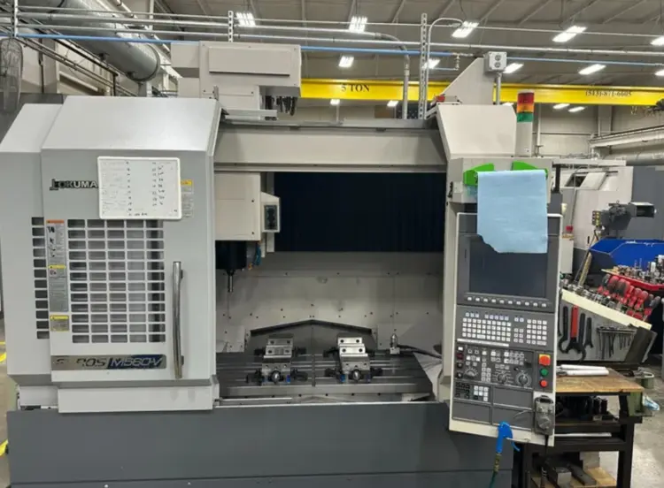 Vertical machining center for sale. Features a 41.3" x 22" x 18.11" XYZ capacity, 30 hp motor, 15,000 RPM, 32-tool ATC, #40 taper, and 3-axis capability. Table dimensions: 22.04" x 51.18". Used condition.