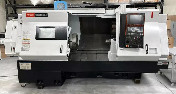 2007 MAZAK NEXUS QUICK TURN 450-II CNC Lathe, featuring a 33.27" swing and 40.3" machining length. Equipped with 2 axes and a 50 hp motor reaching up to 2,000 RPM. Includes a tailstock.