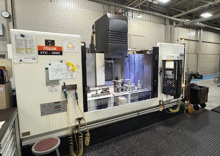 2011 MAZAK VTC-300C used vertical machining center with 65.35" X, 30" Y, 26" Z travel, 25 HP spindle, 12,000 RPM, and a 48-tool magazine. Features Mazatrol CNC, auto tool measurement, rotary table.