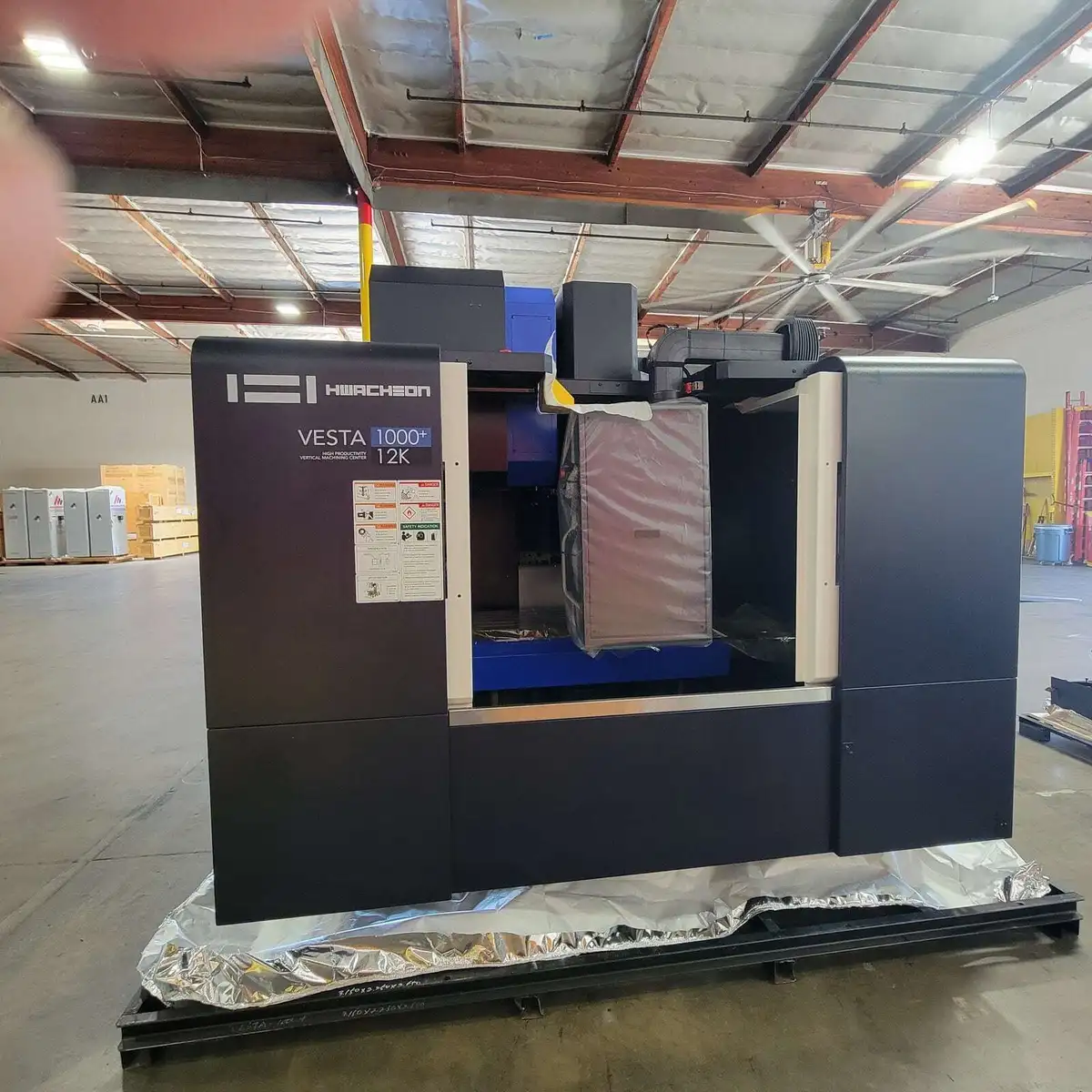 Vertical Machining Center features a 3-axis system with Fanuc control, 10,000 RPM spindle, and a 24-tool ATC. Specs: 1,000x550x500 mm travel, BT-40 taper. Includes chip conveyor, oil cooling unit, GSA, air dryer. Used condition.