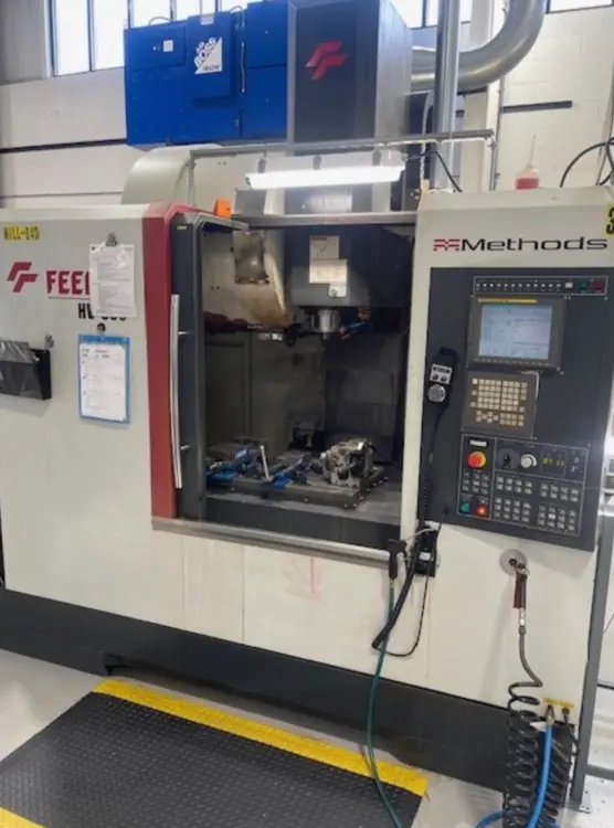 Used Vertical Machining Center. Specs: X/Y/Z 31.5"/20.5"/19.9", 30 hp, 15,000 RPM, 30 ATC tools, taper 40. FANUC 18-MB CNC control, coolant through spindle, dual chip augers, and more.