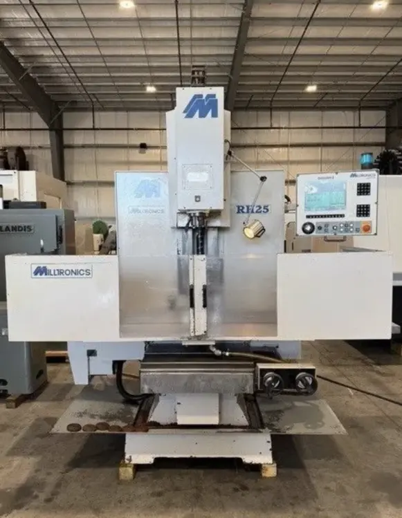 Used Bed Type Mill: 15 HP, 8,000 RPM, 3-axis, 63"x20" table, 50"x25" travel, Centurion 6 CNC control, Cat-40 spindle taper, box way design, electronic handwheels, and coolant system. Wired for 208V/3Ph/60Hz.