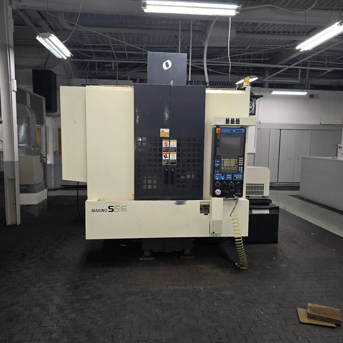 2010 MAKINO S56 Vertical Machining Center with 35.4" x 19.7" table, 20,000 RPM spindle, and 20 ATC. Equipped with 10.4" LCD, FANUC drives, Professional 5 CNC, and Tsudakoma rotary table.