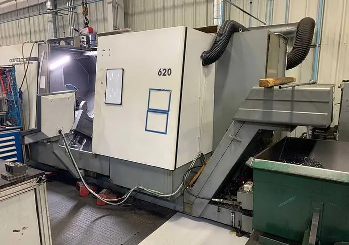Used CNC Lathe CTX620 X 1000, used, equipped with Siemens 840D CNC, 15" 3-jaw chuck, tailstock, and coolant filtration. Swing: 26.4", Machining Length: 40". Ideal for precision tasks. Dimensions: 205"x83"x90", Weight: 22,000 lbs.