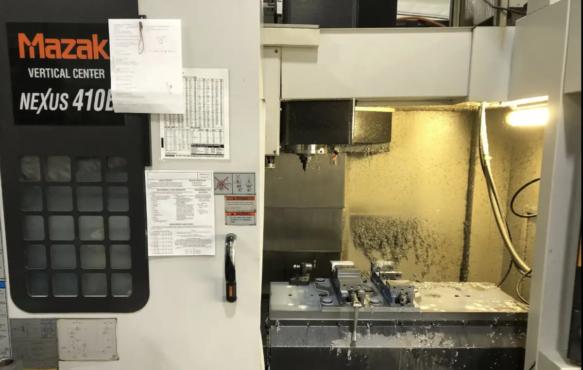 2004 MAZAK Vertical Center Nexus 410B with 4th Axis offers precision machining with 30"x16.1"x20" XYZ travel, 15 hp, 12,000 RPM, and a 30-tool ATC. Equipped with Mazatrol CNC, MistBuster, and chip conveyor.