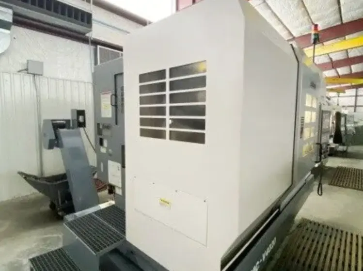 Used Vertical Machining Center for sale. Features 40" x 20" x 17.7" XYZ travel, 15 hp, 8,000 RPM, 20 ATC, CT-40 Taper. Includes OSP-200 control, chip conveyor, coolant thru spindle, 4th axis, Tsudakoma RB-250R.