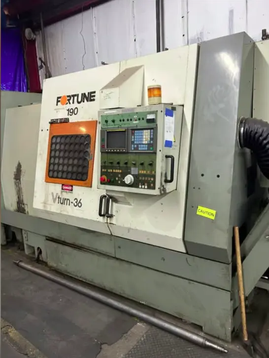 Fortune VTURN-36 CNC Lathe, used but reliable, features a 25.5" swing, 35" machining length, and 35 hp power. With a 12" chuck, 2,500 RPM max, and 21.6" turning diameter, it includes a tailstock but no live tooling or sub spindle; HRC 55 equipped.