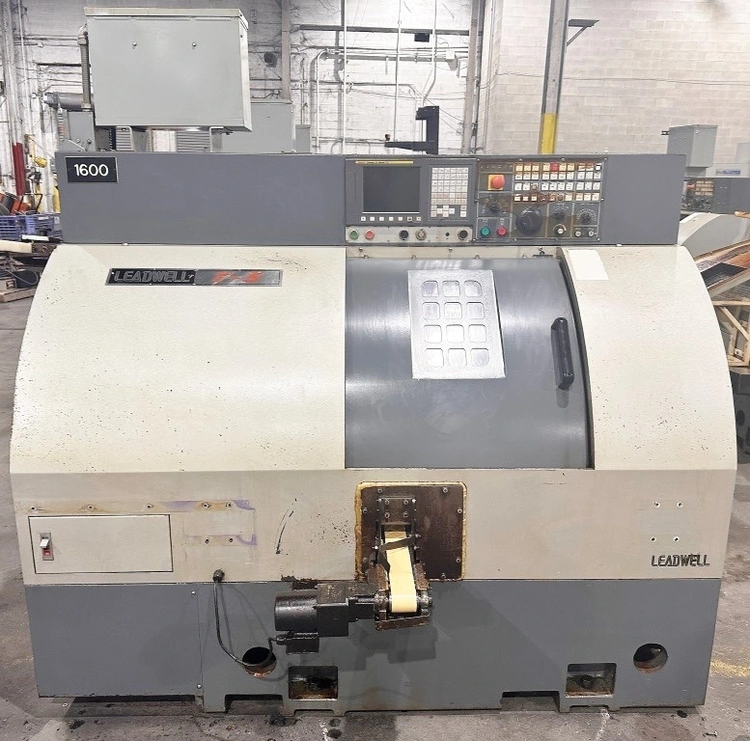 Used CNC Lathe for sale, featuring 2-axis control, 10 hp, and 4,500 RPM. Specs include 12.9" swing, 9" machining length, and 6" chuck size. Comes equipped with a gang style setup, auto parts loading/unloading system, and chip conveyor.