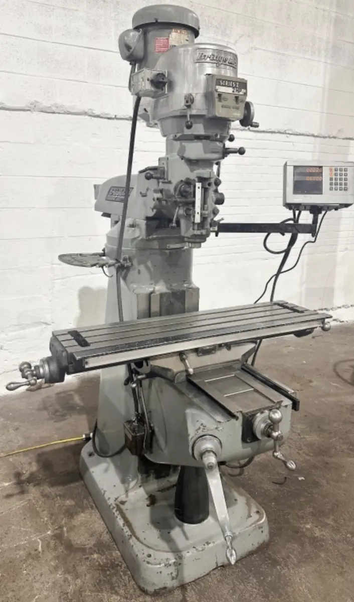 Used Vertical Mill available. Features a 9" x 42" table and HEIDENHEIN DRO. Currently wired for 230V.