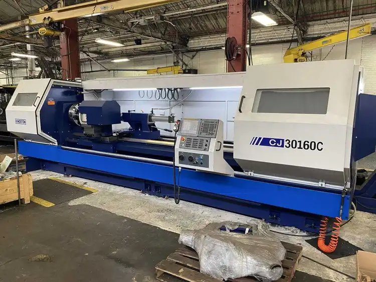 2024 KINGSTON CJ-30160C CNC Lathe, used but robust, features Fanuc OiTF Plus Control, live tooling turret, and a hydraulic tailstock. Max turning length of 144.8". Equipped with various steady rests, auto tool probe, chip conveyor, coolant system, and more.