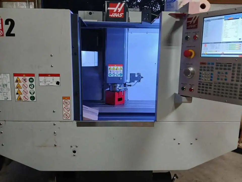 2020 HAAS Super Mini Mill 2, a reliable vertical machining center, offers a 20"x16"x14" work area, 15 hp power, and 10,000 RPM. Features include Next Gen control, chip auger, and rigid tapping. 20-tool ATC included.