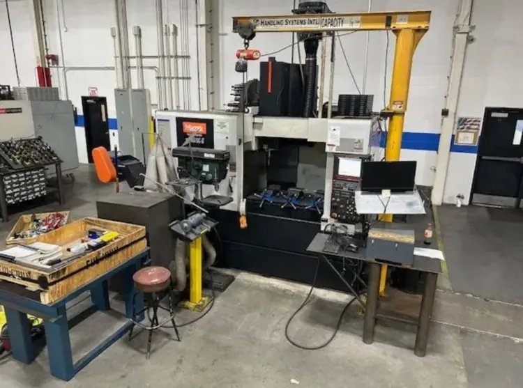 Used, vertical machining center, X: 41.3", Y: 20", Z: 20", 25 hp, 12,000 RPM, 38 ATC. Features MAZAK MATRIX CNC control, high-pressure coolant, Renishaw sensor, and connects via Ethernet port. 3 Kurt vices included.