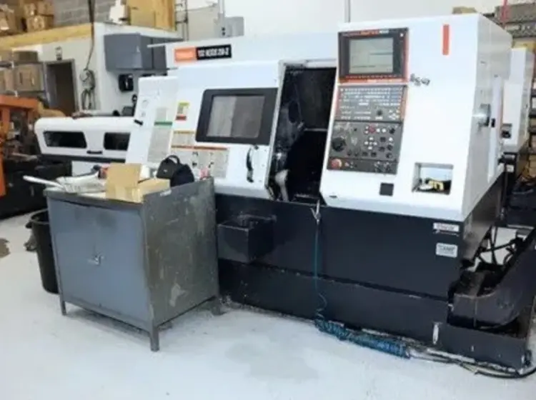 CNC Lathe in used condition. Features 24" swing, 18.73" machining length, 10" chuck, 4,000 RPM max, and 3.46" spindle bore. Includes Kitagawa B-210 Chuck, chip conveyor, LNS barfeed, tailstock, and parts catcher.