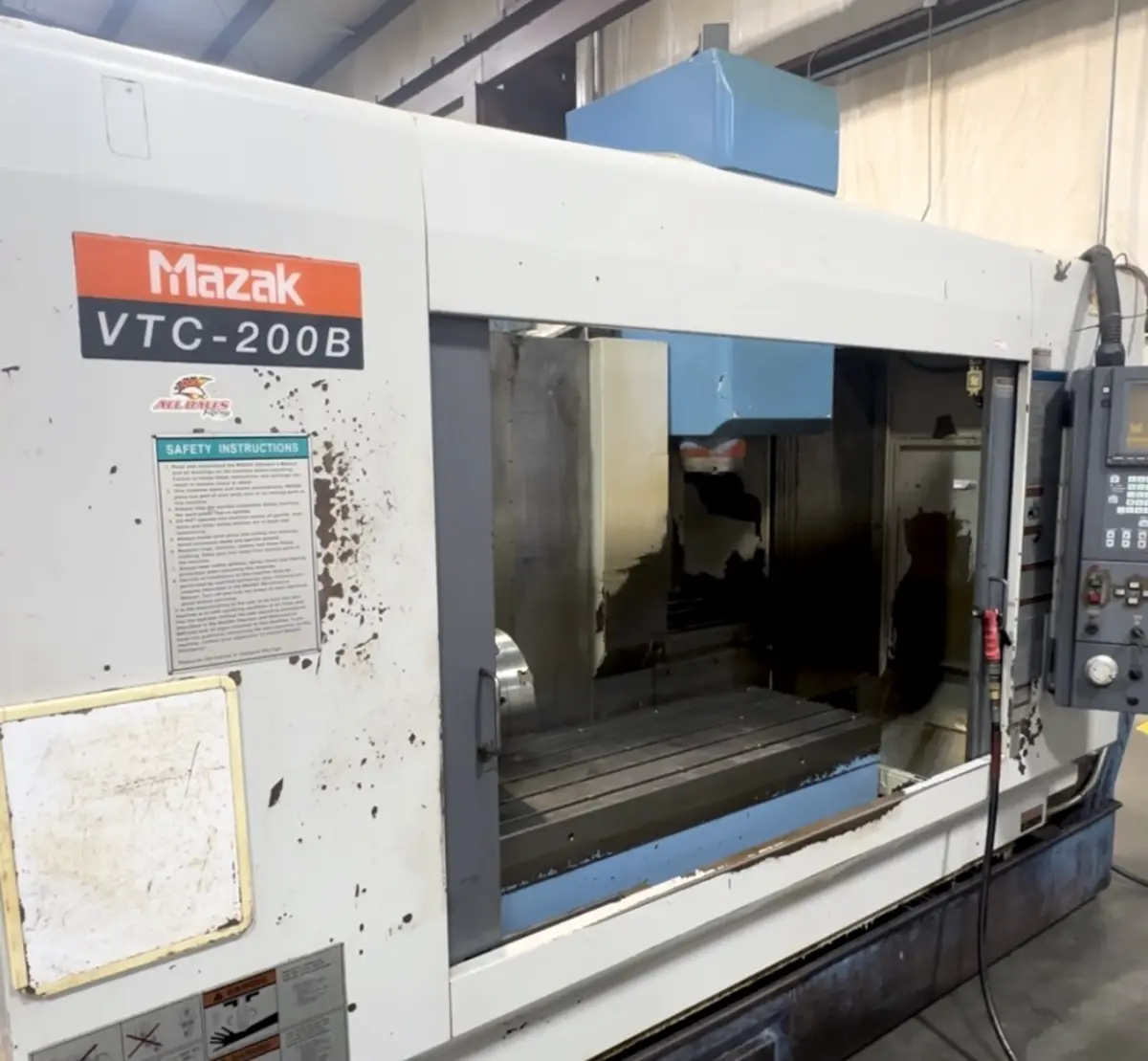 1999 MAZAK VTC-200B Vertical Machining Center for sale. Featuring 44"x20"x20" travel, 20 hp, 10,000 RPM spindle, 24 ATC, 40 taper, 57"x20" table, and 4-axis capability with rotary.