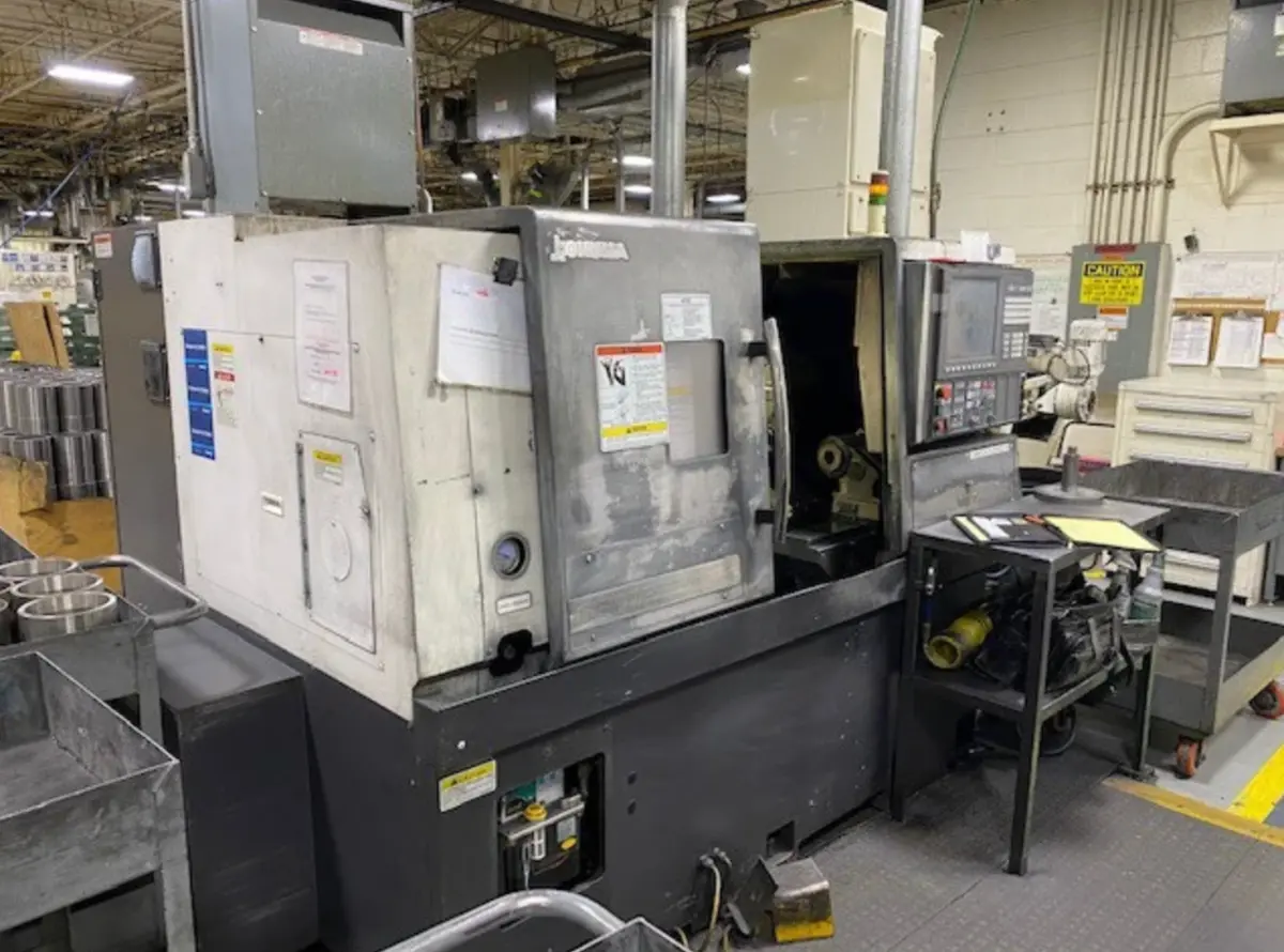 Used CNC Lathe offers a swing of 20.47", machining length of 19.69", and a 10" chuck. With a 20 hp motor reaching up to 3,000 RPM, it features a turning diameter of 12.2" and includes tailstock.
