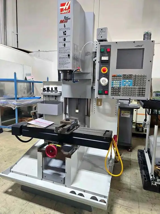 Used Vertical Machining Center; 3-axis, 7.5 hp, 4,000 RPM with standard 40-taper tooling. Features a 30” X, 12” Y, 16” Z capacity, and a 10.5” x 47.75” table. Equipped with direct belt drive, rigid tap, tool holders, and vise.