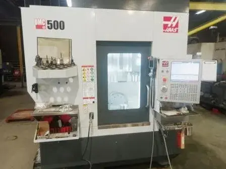Used vertical machining center, offers 5-axis capabilities with 24" X, 16" Y, and 16" Z travel. Equipped with 30+1 ATC, CAT 40 spindle taper, chip conveyor, and rigid tapping.