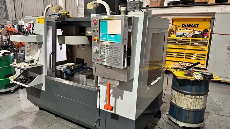 Used Vertical Machining Center with 30" x 16" x 20" travel, 30 hp, and 8,100 RPM. Features 20-tool ATC, 36" x 14" table, and 3 axes. Includes Haas CNC Control, Chip Auger, and Remote Jog Handle.