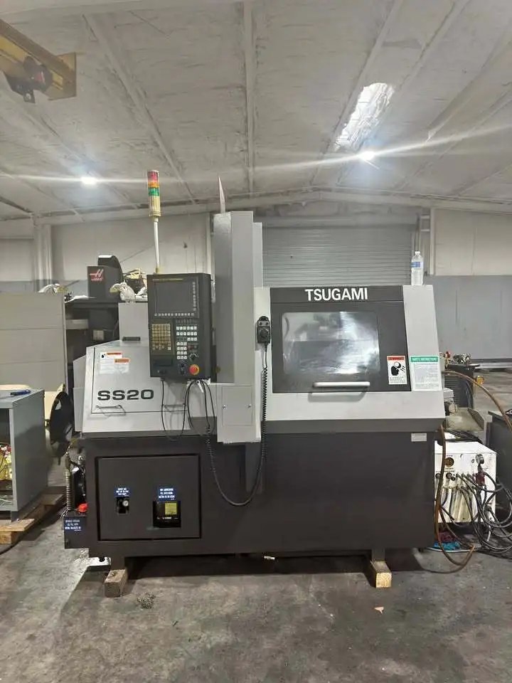 Used Swiss Type Automatic Screw Machine with a 0.75" spindle hole, 5 hp, and 10,000 RPM. Features 7 axes, 24 tool positions, and max turning length of 8.670". Includes Fanuc 31, LNS chip conveyor, and high-pressure coolant system.