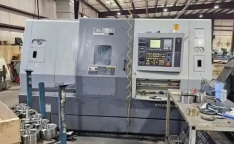 Used CNC Lathe with 10" chuck, 29.5" swing over bed, and max turning diameter of 19.7". Features Fanuc control, turret, tail stock, coolant, and chip conveyor.