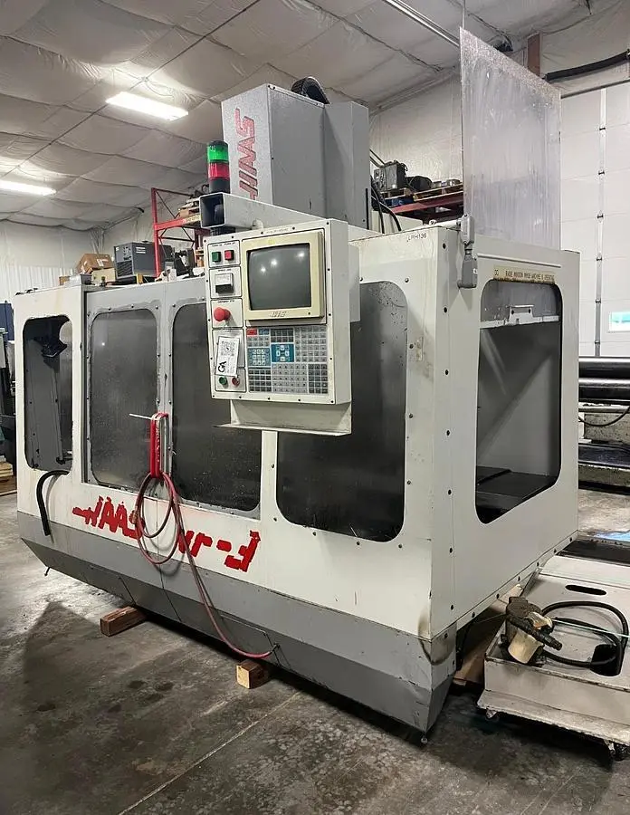Explore precision with the 1995 HAAS VF-3 vertical machining center. Features include a 40"x20"x25" travel, 15 hp motor, 7,500 RPM, and a 20-tool changer. Equipped with a chip auger, work lights, and air-conditioned cabinet.