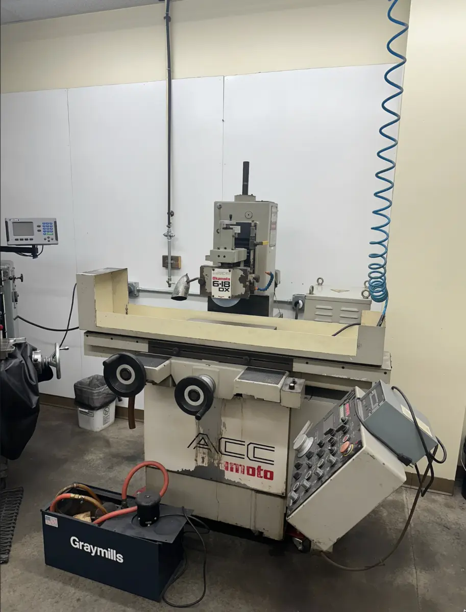1995 OKAMOTO ACC-6-18DX Reciprocating Surface Grinder, used condition. Features a 6" x 18" table, 2 hp power, and an 8" grinding wheel diameter.