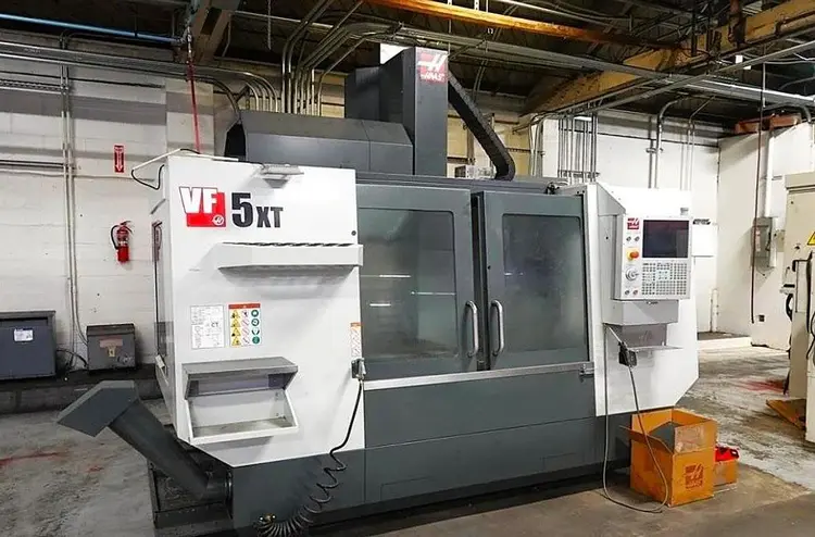 2019 HAAS VF-5XT Vertical Machining Center, used, with 60"x26"x25" travel, 20 hp, 8,100 RPM, Cat-40 taper. Features high-speed machining, 30 ATC, expanded memory, and more. Equipped with 1 GB memory, Rigid Tapping, and convenient work table options.
