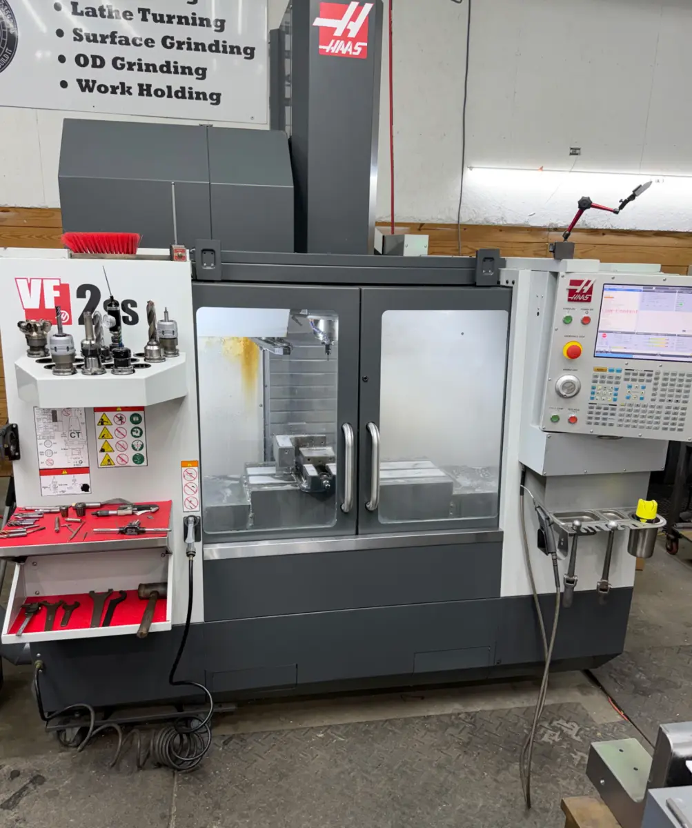 Used Vertical Machining Center, featuring a 30" x 16" x 20" XYZ travel, 30 hp power, 12,000 RPM, 24 ATC, and 40 taper. Includes through spindle coolant and 3 Kurt vises. Table dimensions: 14" x 36".