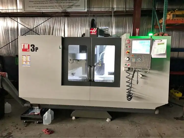 For sale: 2012 HAAS TM-3P Vertical Machining Center with 4th axis and probing. Features 40" x 20" x 16" travel, 7.5 hp power, 6,000 RPM, CAT40 taper, 10-tool ATC, 14.5" x 57.75" table. Includes several CAT 40 holders.