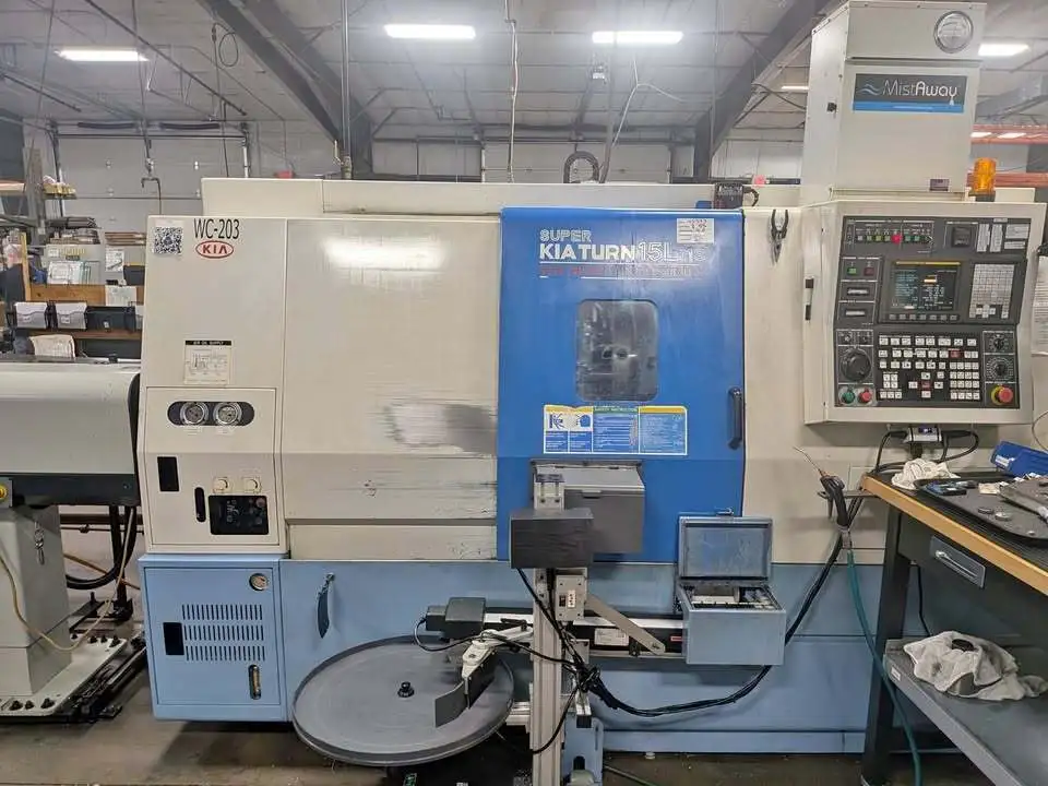 CNC Lathe, used, with Fanuc Oi-TB and LNS Bar Feeder. Specs: 530 mm machining length, 4-axis, 6" chuck, 1.7" bar capacity, 15 hp, 6,000 RPM max, and live tooling.