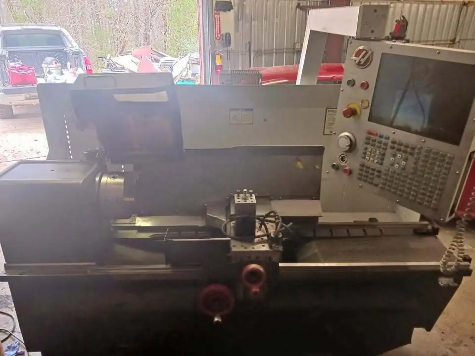 CNC Lathe, used. Features 20" swing, 48" machining length, and 2 axes. Equipped with tailstock, toolpost, rigid tapping, and coolant. Power: 10 hp, Max RPM: 2000, Turning Dia: 16", Bar Capacity: 3".