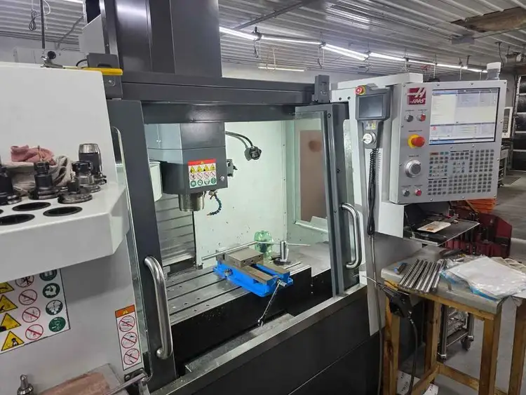 2021 Haas VF-2 Vertical Machining Center features 30" x 16" x 20" travel, 30 hp, 8,100 RPM, CT 40 taper, 20-position tool changer, wired for 4th axis, chip auger, and Renishaw probing.