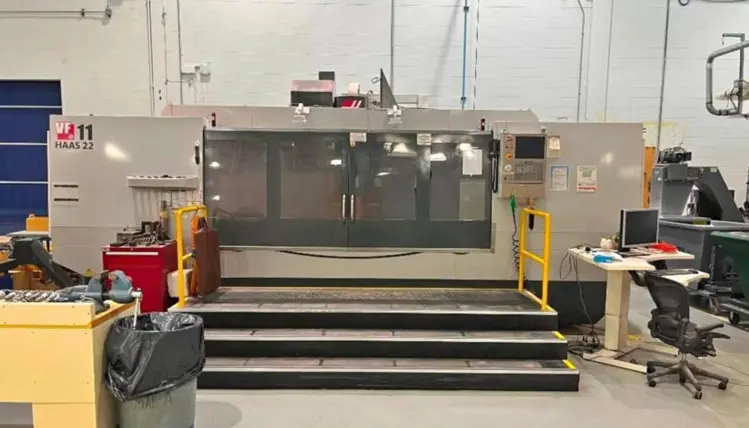 Used Vertical Machining Center available, featuring a 120"x40"x30" travel, CAT 40 taper, 10,000 RPM spindle speed, 25 ATC, and a host of accessories including Renishaw Tool Setter, remote handwheel, and chip conveyor.