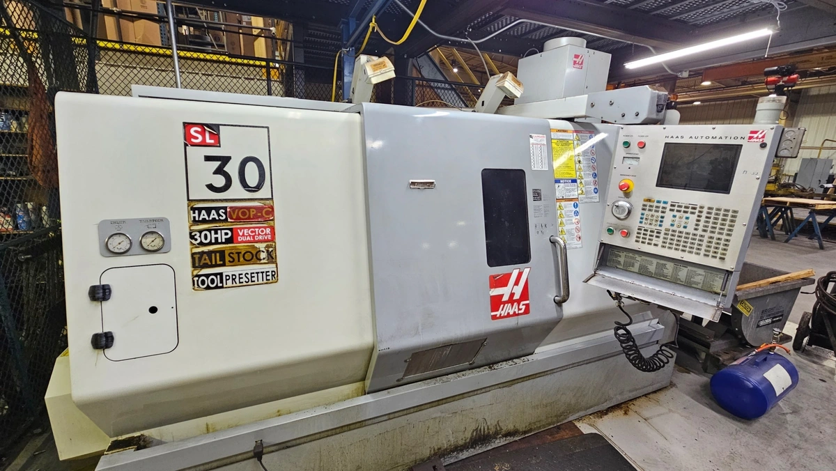 Used CNC Lathe, 2005 model, offers 30" swing, 32" machining length, and a 10" chuck. Features 2-axis, 30 hp, max RPM of 3,400, and a tailstock.