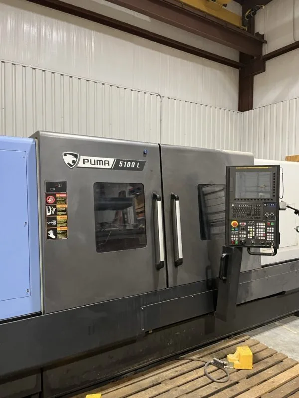 CNC Lathe, used condition, features a 10.8" Big Bore, Fanuc 0i-Plus control, turbo discharge chip conveyor, 145psi coolant pump, and pneumatic air chuck. Cutting hours: 876. Max turning: 25.6" x 81.97".