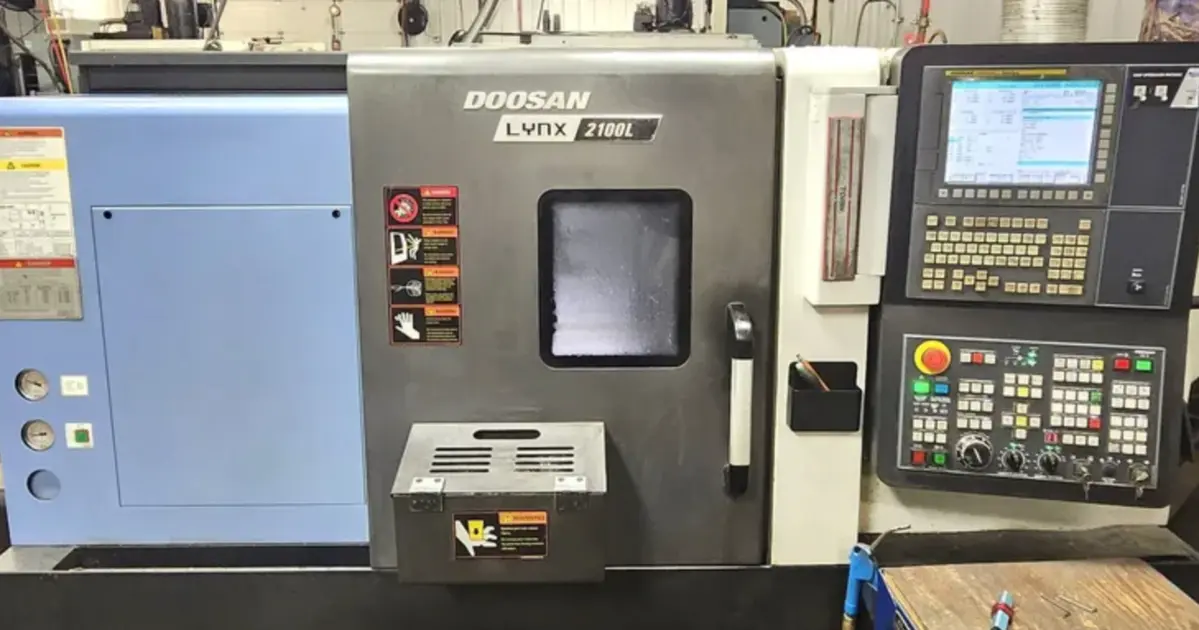 Used CNC lathe with 7,500 cutting hours. Features 22" machining length, 20 hp, and a max RPM of 4,500. Includes Doosan Fanuc i Series control, tool presetter, chip conveyor, and more.