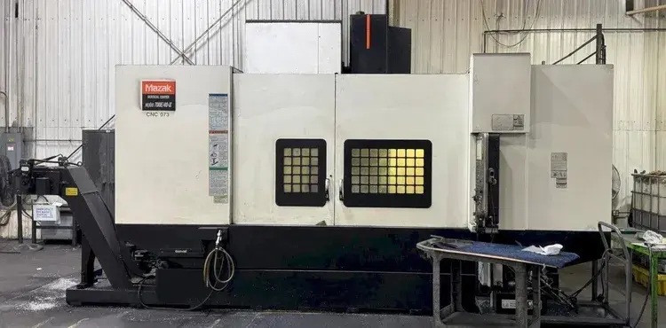 Vertical Center Nexus used. Features 80"x27.56"x28.35" capacity, 15 hp, 12,000 RPM, 30 ATC, and 4-axis. Includes high-pressure coolant, Nikken rotary table, chip conveyor, USB ports, and more. Low 5040 cutting hours.