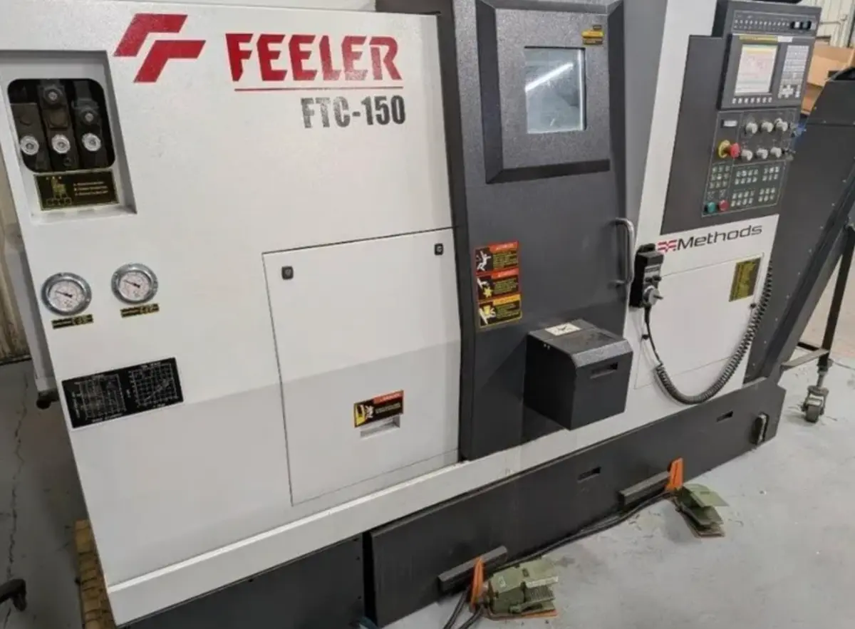 CNC Lathe, used, boasts a 21.7" swing, 12.2" machining length, 2-axis, 6" chuck, 2" bar capacity, 15 hp, up to 6,000 RPM, 11.8" turning diameter. Comes with hydraulic tailstock, chip conveyor, and coolant system.