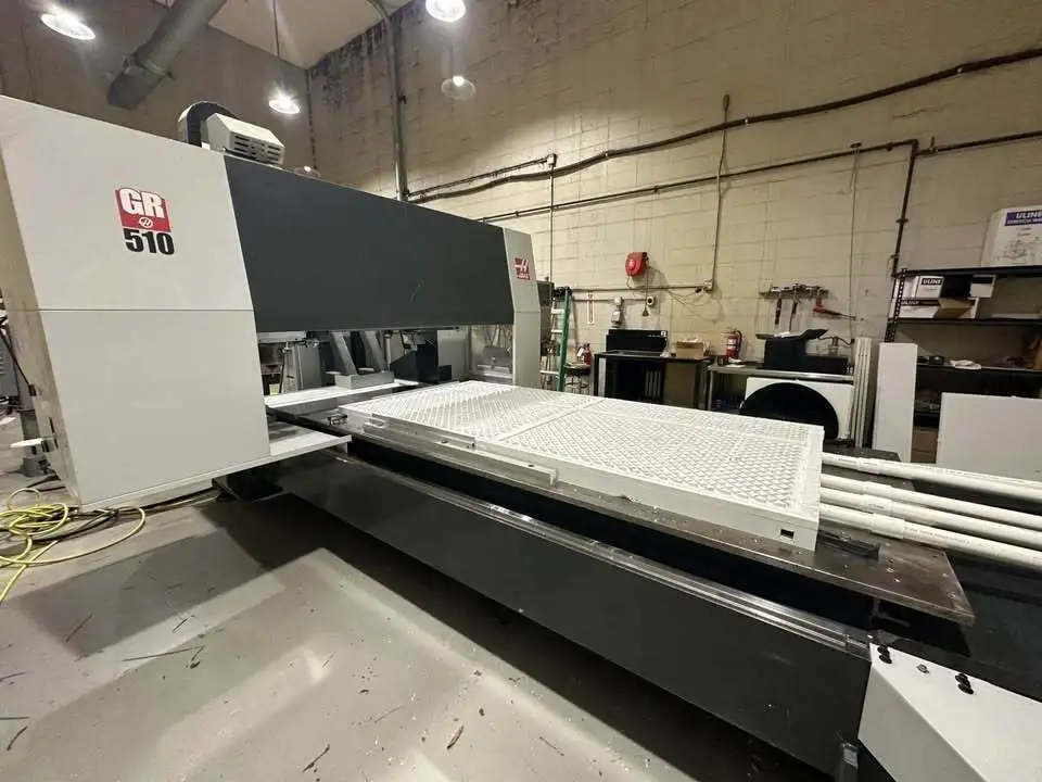 HAAS GR-510, 2020, used, with 121" x 61" x 11" travels and a 15,000 RPM spindle. Features include Haas CNC control, remote jog handle, coolant system, and high-speed machining. Supports up to 6000 lbs on table. Dimensions: 206" x 111" x 108".