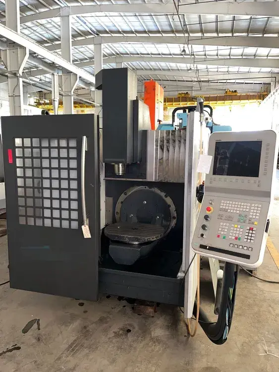 Used 5-axis vertical machining with Siemens control, 16-position tool changer, and 24.7" x 19.7" swiveling table. Features a 17.5 HP motor, 8000 RPM spindle, and chip conveyor.