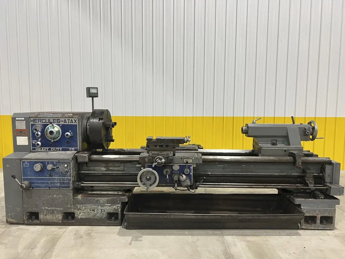 Used Engine Lathe for sale. Offering a 27" swing over ways, 17" swing over cross slide, and an 84" distance between centers. Equipped with a taper attachment, rapid traverse, and more. Powered by a 20 HP motor with speeds from 12 to 1200 RPM.