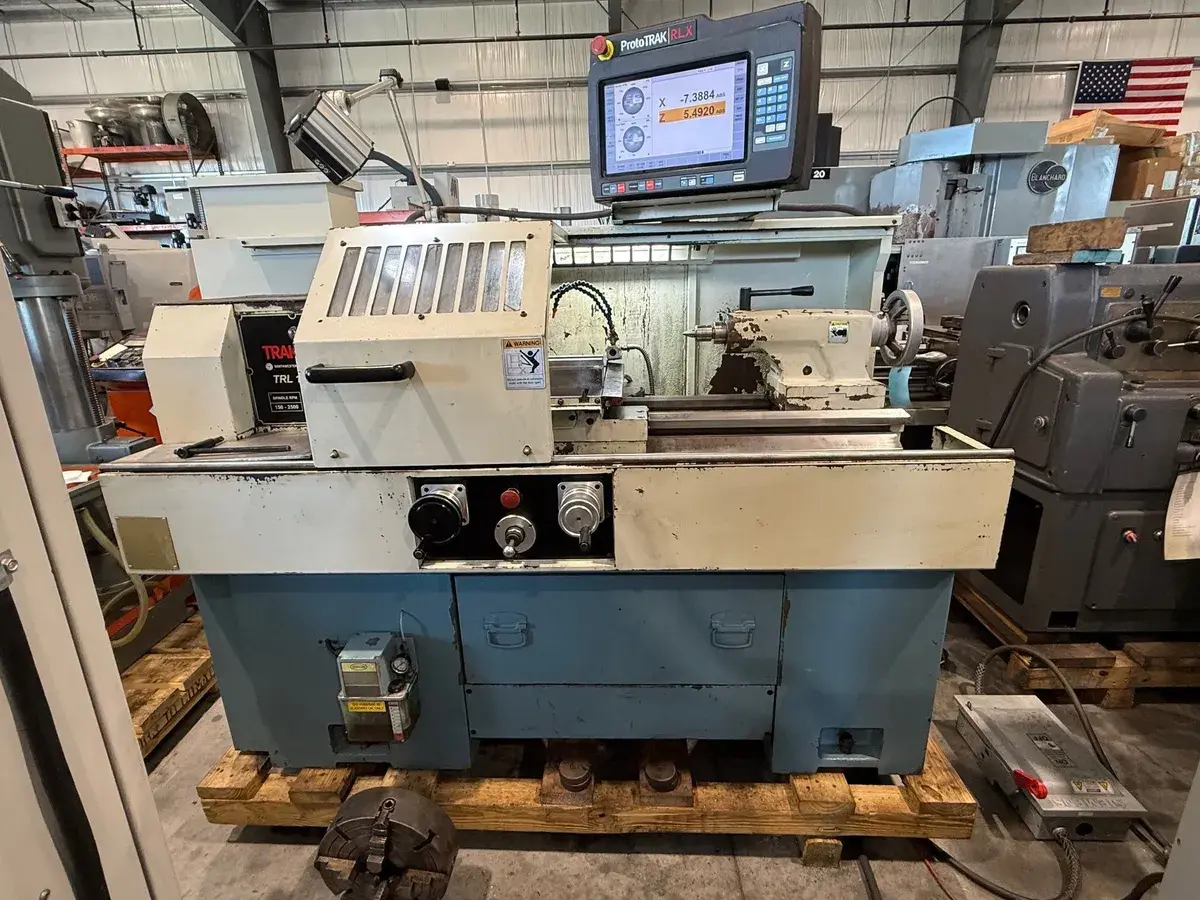 CNC lathe, used. Features 8" height of centers, 30" distance between centers, 2.12" spindle through hole, 7.5 HP spindle motor, and WI TRAK RLX touch screen control. Includes 10” and 12” chucks. Weighs 3,450 lbs.