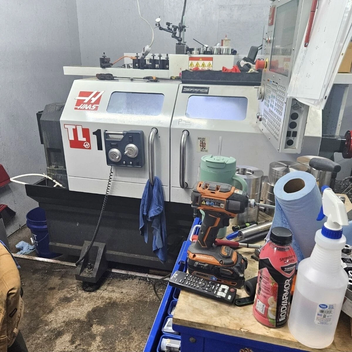 Used CNC Lathe, 20" swing, 762 mm machining length, 8" chuck, 12 hp, max 2,000 RPM. Equipped with electronic handwheels, MT4 manual tailstock, and 5″ manual steadyrest.