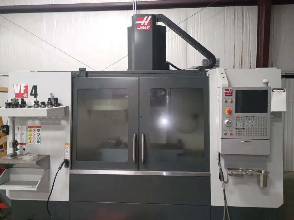 2023 HAAS VF-4 Vertical Machining Center, lightly used with approx. 250 hrs. Features 50" X, 20" Y, 25" Z, 30 hp, 8,100 RPM, and 3-axis. Table measures 18"W x 52"L.