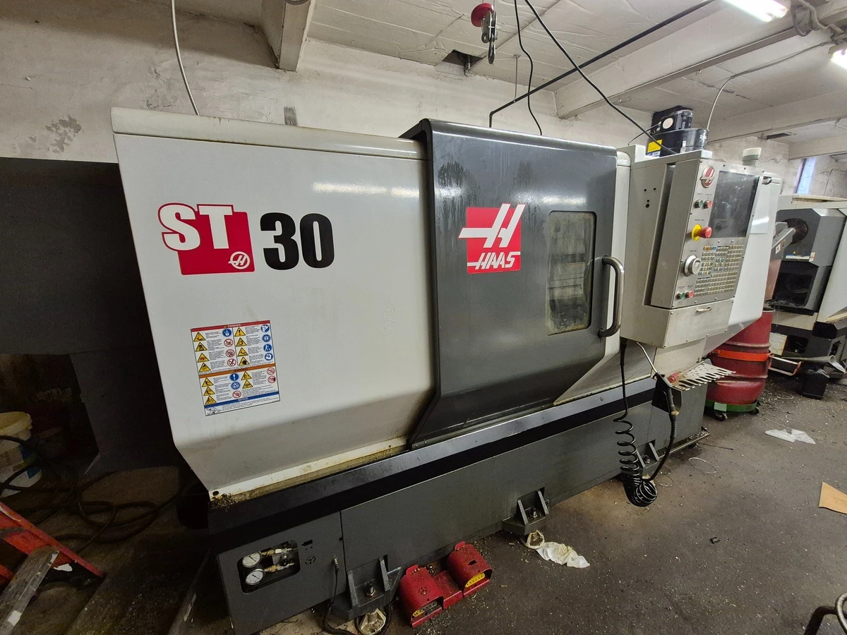 CNC Lathe, used condition. Features a 31.75" swing, 26" machining length, 10" chuck size, 3" bar capacity, and 30 hp motor with a maximum RPM of 3,400. Ideal for precision turning with a 21" turning diameter.
